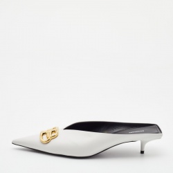Balenciaga White Leather BB Knife Heel Mules Size 40