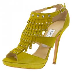 Jimmy Choo Metallic Gold Glitter Fabric Crystal Embellished Pointed Toe Slingback Sandals Size 38