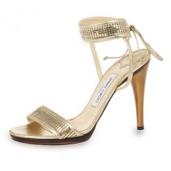 Jimmy Choo Black/Gold Leather Strappy Sandals Size 36