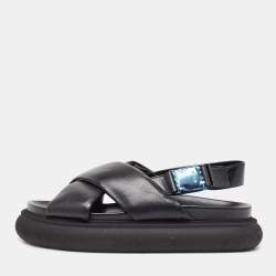 Moncler Black Leather Solarisse Cross Strap Sandals Size 38