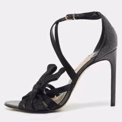 Sophia Webster Black Metallic Leather an Fabric Bonnie Ankle Strap Sandals Size 39