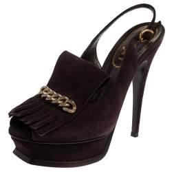 Yves Saint Laurent Purple Suede Tribute Chain Detail Platform Sandals Size 39