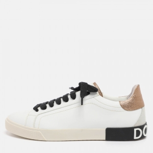 Dolce & Gabbana White/Gold Leather Portofino Low Top Sneakers Size 40