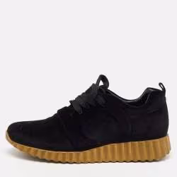 Salvatore Ferragamo Black/Gold Leather and Neoprene Palau Sneakers Size 38.5