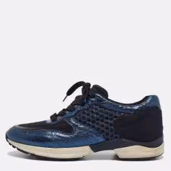 Tod's Blue/Black Leather and Mesh Lace Up Sneakers Size 38.5