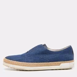 Tod's Blue Denim Francesina Slip On Espadrille Sneakers Size 36.5