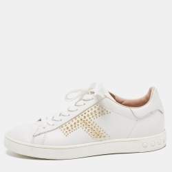 Tod's Metallic Gold Perforated Leather Sneakers Size 38.5