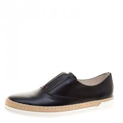 Tod's Monochrome Floral Printed Leather Espadrille Slip On Sneakers Size 36.5