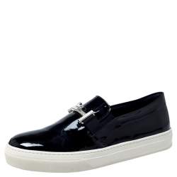 Tod's Black Patent Leather And Suede Lace Low Top Sneakers Size 40