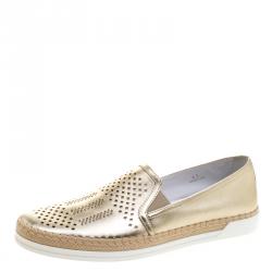 Tod's Metallic Silver Perforated Leather Espadrille Low Top Sneakers Size 39
