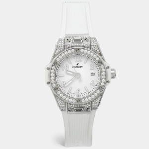 Hublot Big Bang One Click 485.SE.2010.RW.1604 White Dial Stainless Steel Resin Diamond Rubber Women's Wristwatch 33 mm