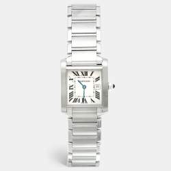 Cartier Silver Stainless Steel Diamond Tank Francaise W4TA0008 Women's Wristwatch 20 mm