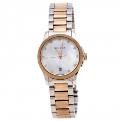 Gucci Mother of Pearl Diamond Two Tone Stainless Steel G-Timeless YA126513 Women's Wristwatch 27 mm