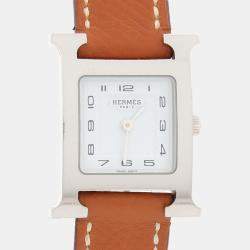 Hermes White Stainless Steel Calfskin Leather Heure H 036702WW00 Women's Wristwatch 21 mm